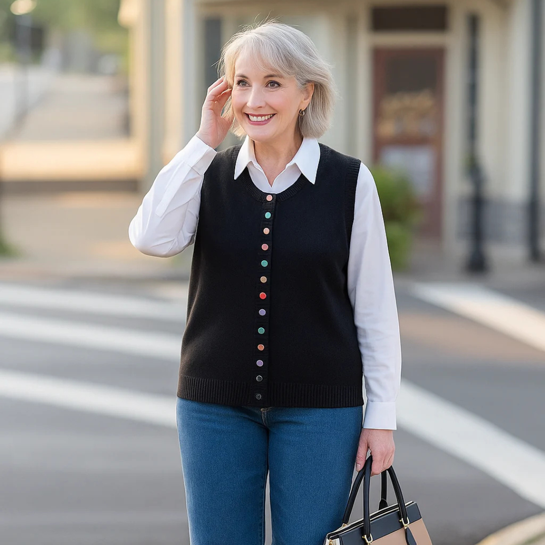 THE ORIELLE | COLOR-BUTTON KNIT VEST